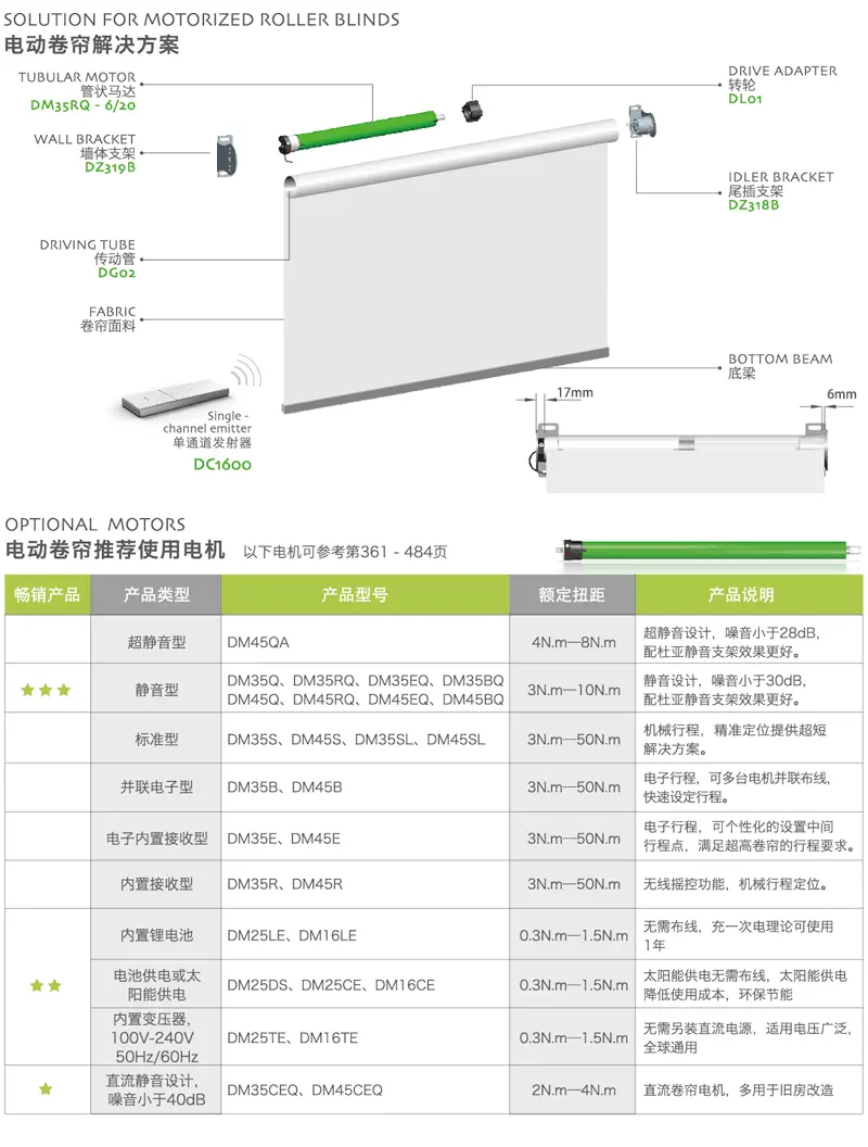 加了機構的可靠性。電動卷簾具有抗紫外線、環 保節能、美化環境、節省室內空間等多種功能,使用杜亞控制系統,